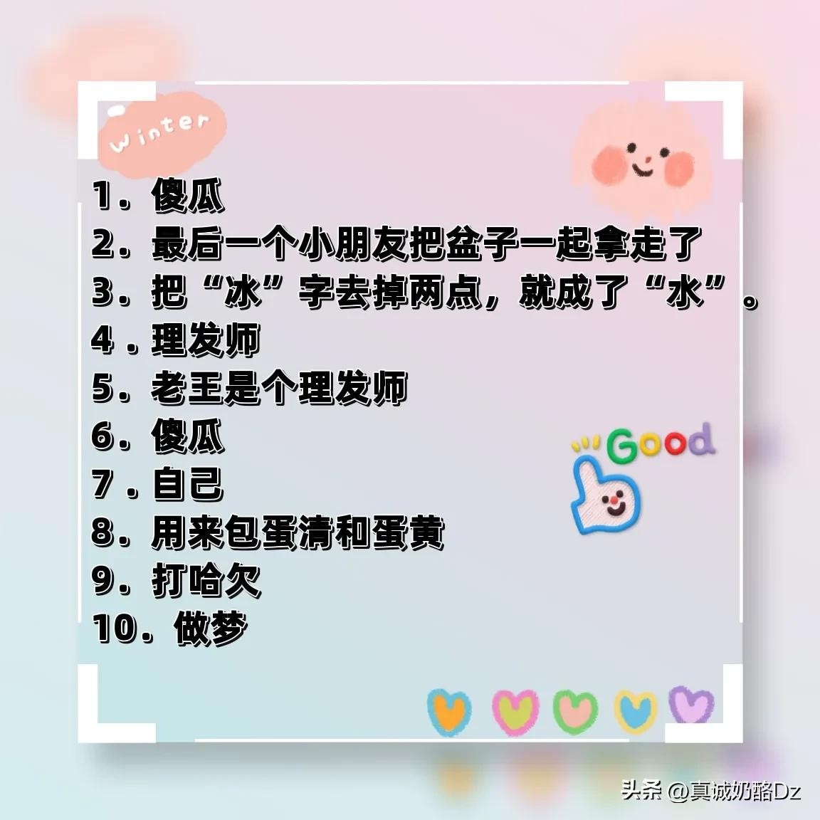 3.你能以最快速度,把冰变成水吗?答案:把“冰”字去掉两点,就成了“水”。