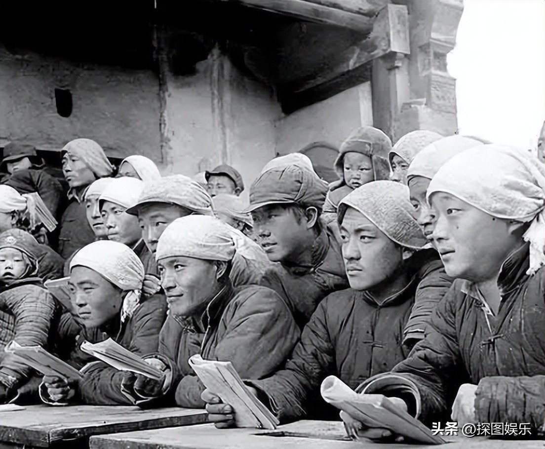 03.1951年,河北定县的农民们积极参加扫盲活动,努力提高自己的文化水平。