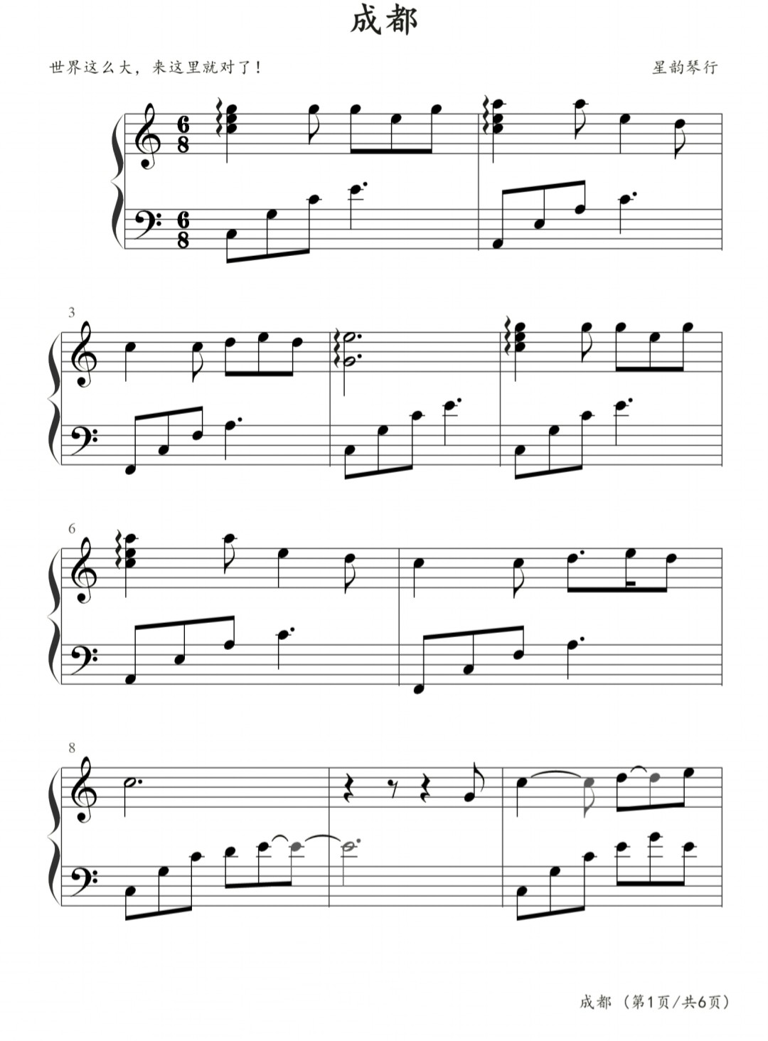 钢琴谱第1页(共6页)