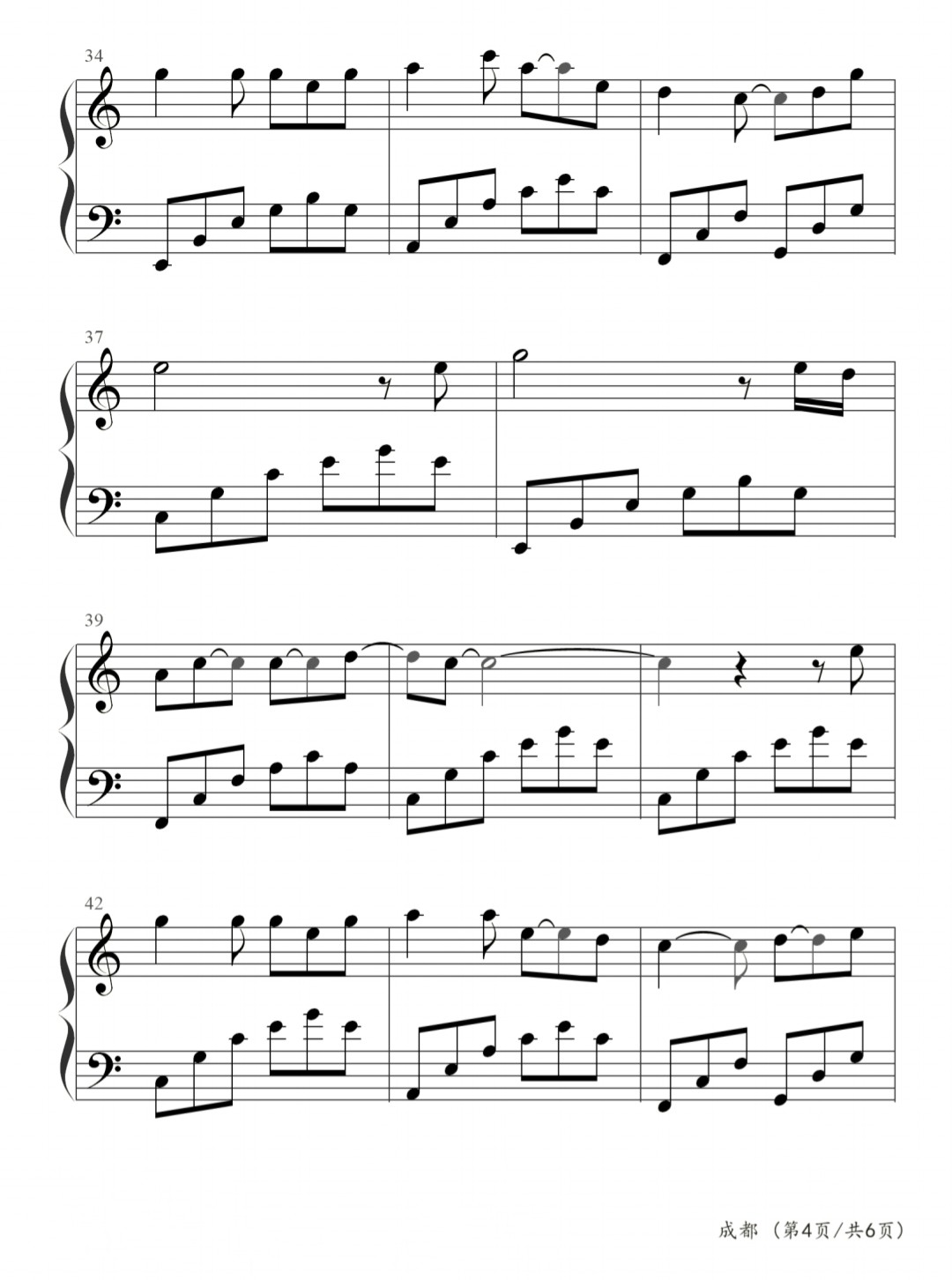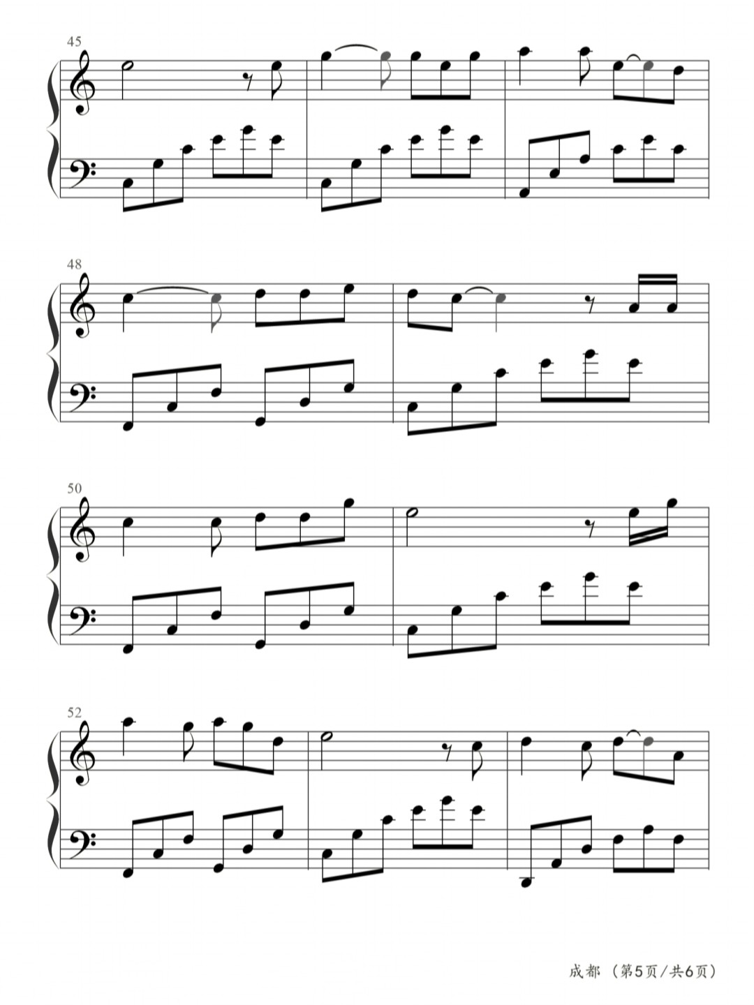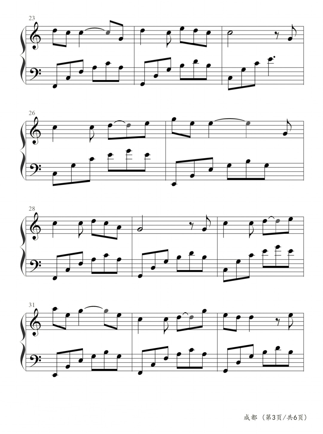 成都,钢琴谱简单版,赵雷,曲谱分享