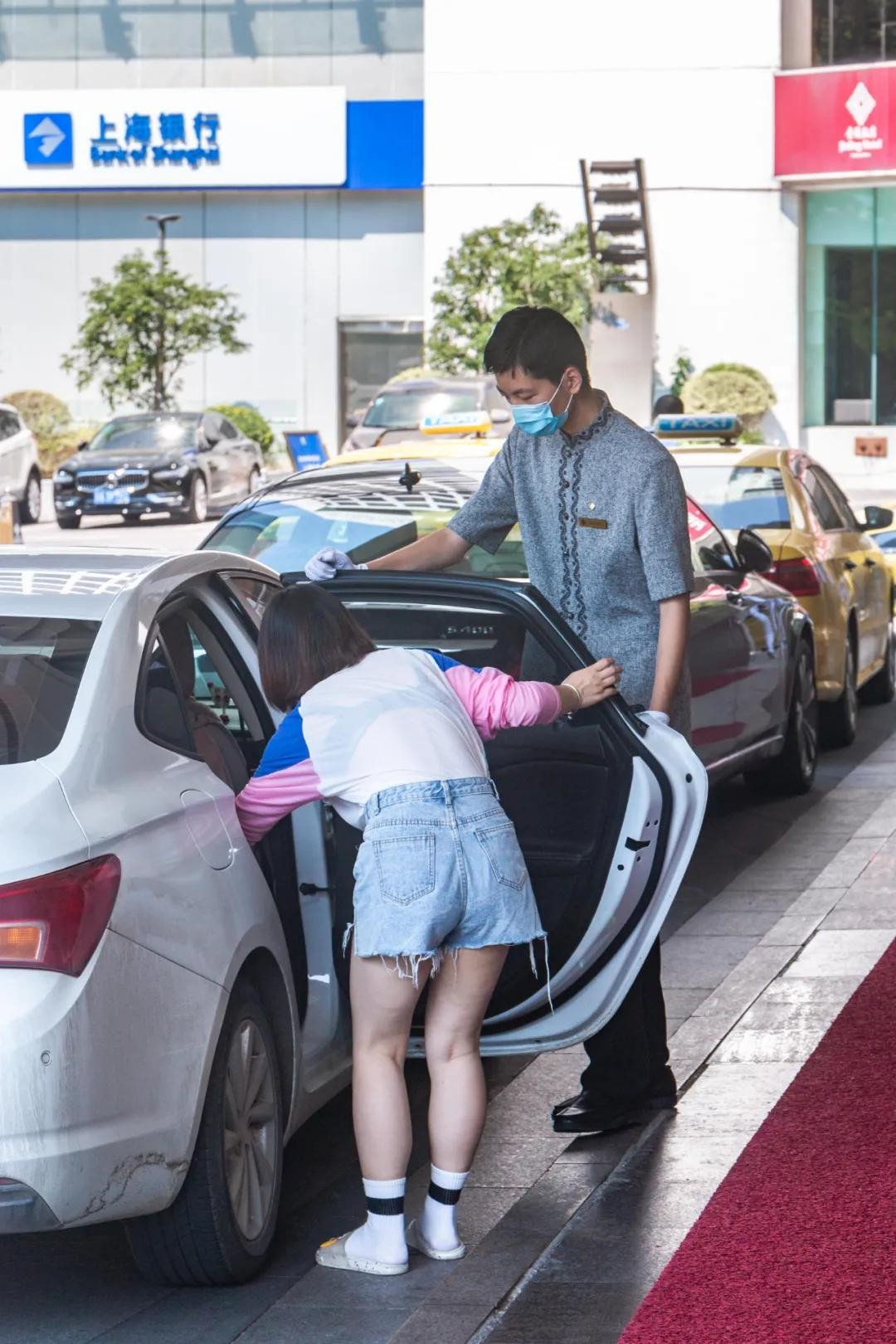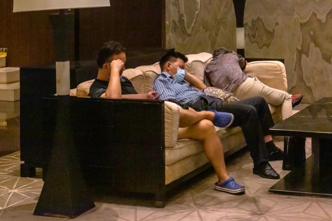 走进饭店正门,尽管入口处依旧有服务生代为开门、泊车,大厅依旧有着金碧辉煌的气度。但穿过衣香鬓影的连廊来到-1楼,烟酒行、“品牌折扣店”甚至苏果好的的出现,都令人不禁满头疑问。
