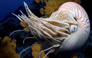 鹦鹉螺是海洋软体动物,共有2属、6种,具卷曲的珍珠似外壳,外壳由许多腔室组成,外套位于外壳内。各腔室之间有隔膜隔开;鳃2对;具63-94只腕,但无吸盘;眼简单,无晶状体;无墨囊。壳薄而轻,呈螺旋形盘卷,壳的表面呈白色或者乳白色,生长纹从壳的脐部辐射而出,平滑细密,多为红褐色。整个螺旋形外壳光滑如圆盘状,形似鹦鹉嘴,故此得名“鹦鹉螺”。分布于热带印度洋——西太平洋珊瑚礁水域。鹦鹉螺已经在地球上经历了数亿年的演变,但外形、习性等变化很小,被称作海洋中的“活化石”,在研究生物进化和古生物学等方面有很高的价值。在现代仿生科学上也占有一席之地,1954年,美国研制出世界第一艘核潜艇“鹦鹉螺”号在美国格罗顿下水。