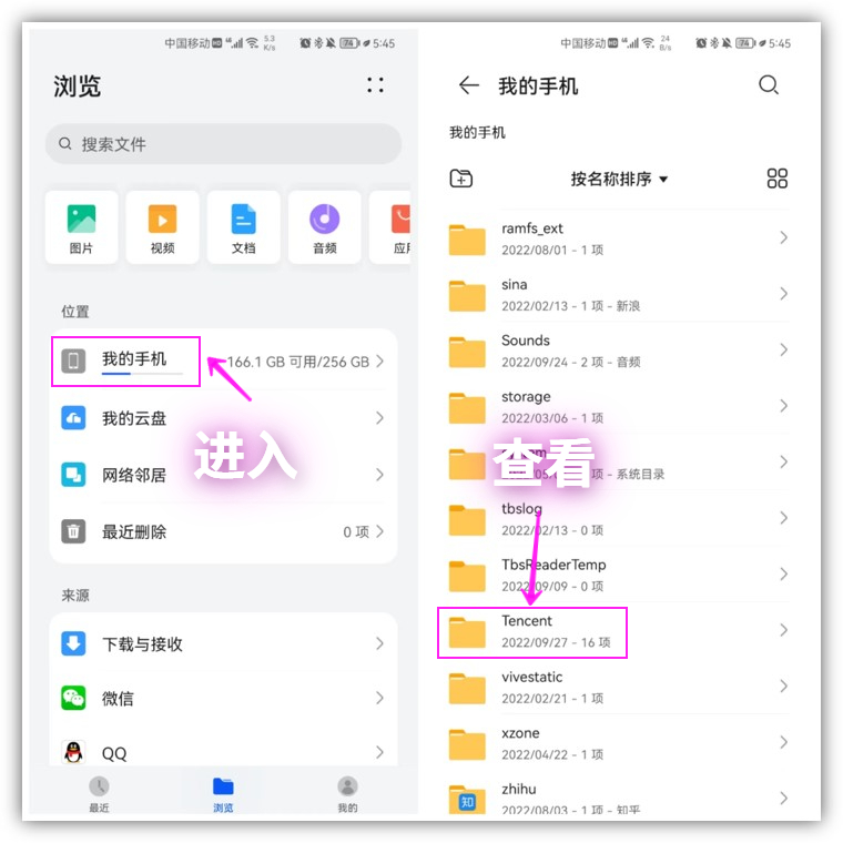 手机文件夹常常被我们忽视,虽然全是英文看不懂,但你只需要找到腾讯文件夹,然后自行辨别文件,是否需要保留或删除。