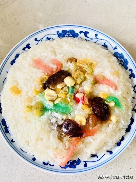 做法:根据不同地区和家庭习惯,选择多种食材,做成一道象征团圆和和睦的菜肴。例如八宝饭可以由糯米、红枣、莲子、薏米等食材组成。