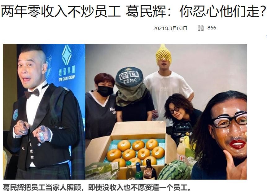 上个月,葛民辉受访时就说过,以往他与公司的员工,都习惯工作接工作,每一年都忙个不停。然而,这两年来,他们的工作完全停顿下来了。