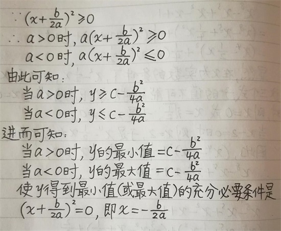 以上,介绍了配方法的重要应用:求二次函数的极值。求极值还有其它方法,例如判别式法,抛物线顶点法等,就不讲了,以免喧宾夺主,冲淡主题。