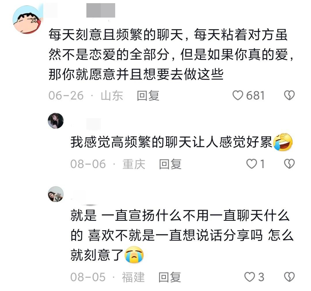 @灯火阑珊处།:每天刻意且频繁的聊天,每天粘着对方虽然不是恋爱的全部分,但是如果你真的爱,那你就愿意并且想要去做这些。
