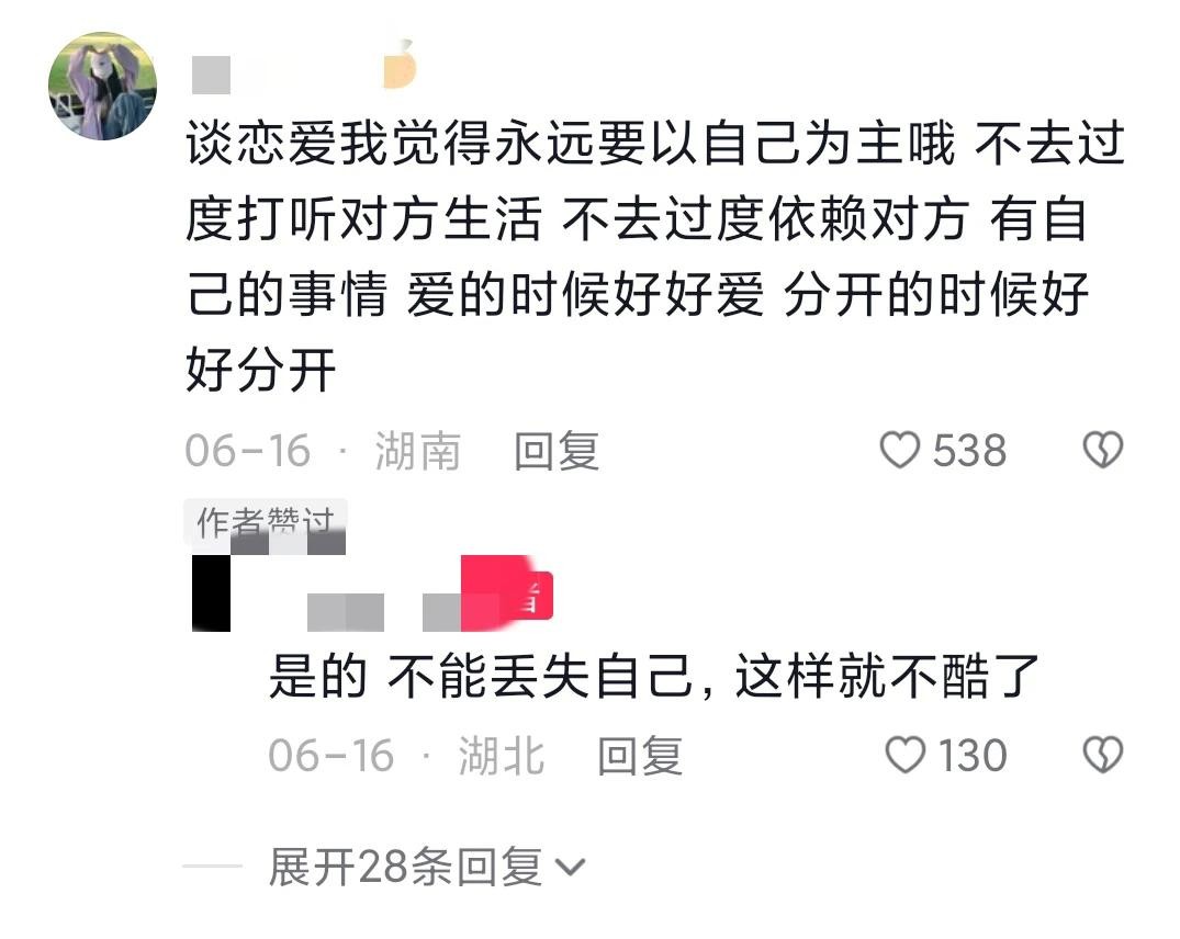 @果粒橙子:谈恋爱我觉得永远要以自己为主哦 不去过度打听对方生活 不去过度依赖对方 有自己的事情 爱的时候好好爱 分开的时候好好分开。