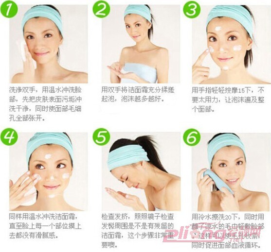 洁面膏使用手法: