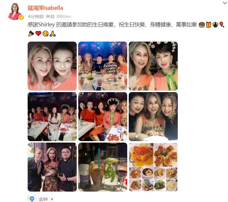 8月17日,前港姐寇鸿萍在个人社交账号上晒出一组聚会照,并配文称:感謝好友Shirley 邀请我參加她的生日晚宴,祝她生日快乐、身体健康、万事如意。