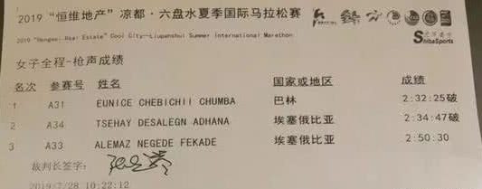 晕倒季军系埃塞俄比亚选手ALEMAZ NEGEDE FEKADE,成绩为2小时50分30秒,就成绩衡量属于女子中等水平。