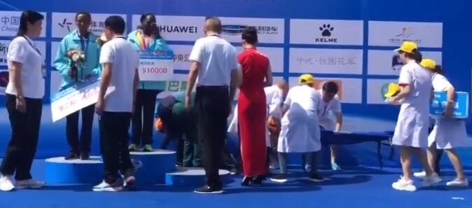 马拉松选手颁奖台上晕倒无人理,嘉宾竟把花放她脚边…