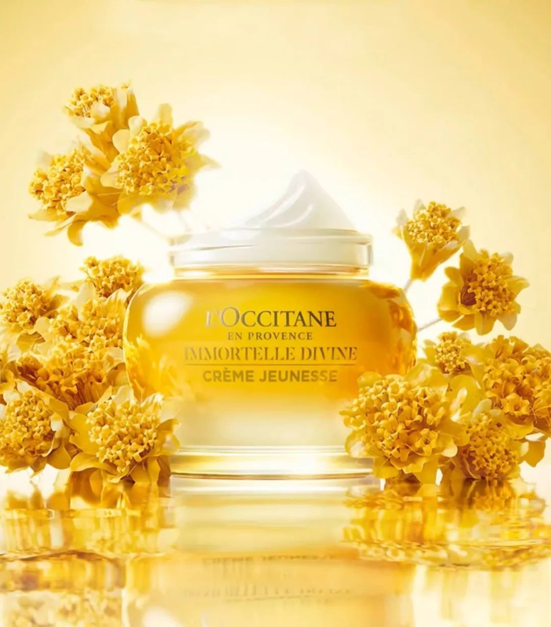 欧舒丹一直以黄金不凋花腊菊为核心成分,这罐面霜更是精华油入霜,从腊菊核心微粒中凝练出更高活性、更高纯度的高能植物视黄醇。