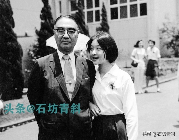 胡茵梦中学时候和父亲胡赓年在学校门口留影