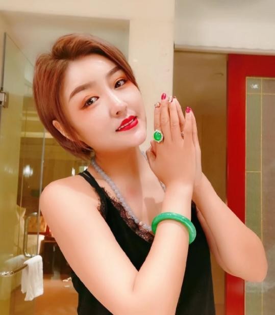 她发布的照片或者视频,都会出现玉镯子、玉项链、玉戒指,一个不够就带俩。
