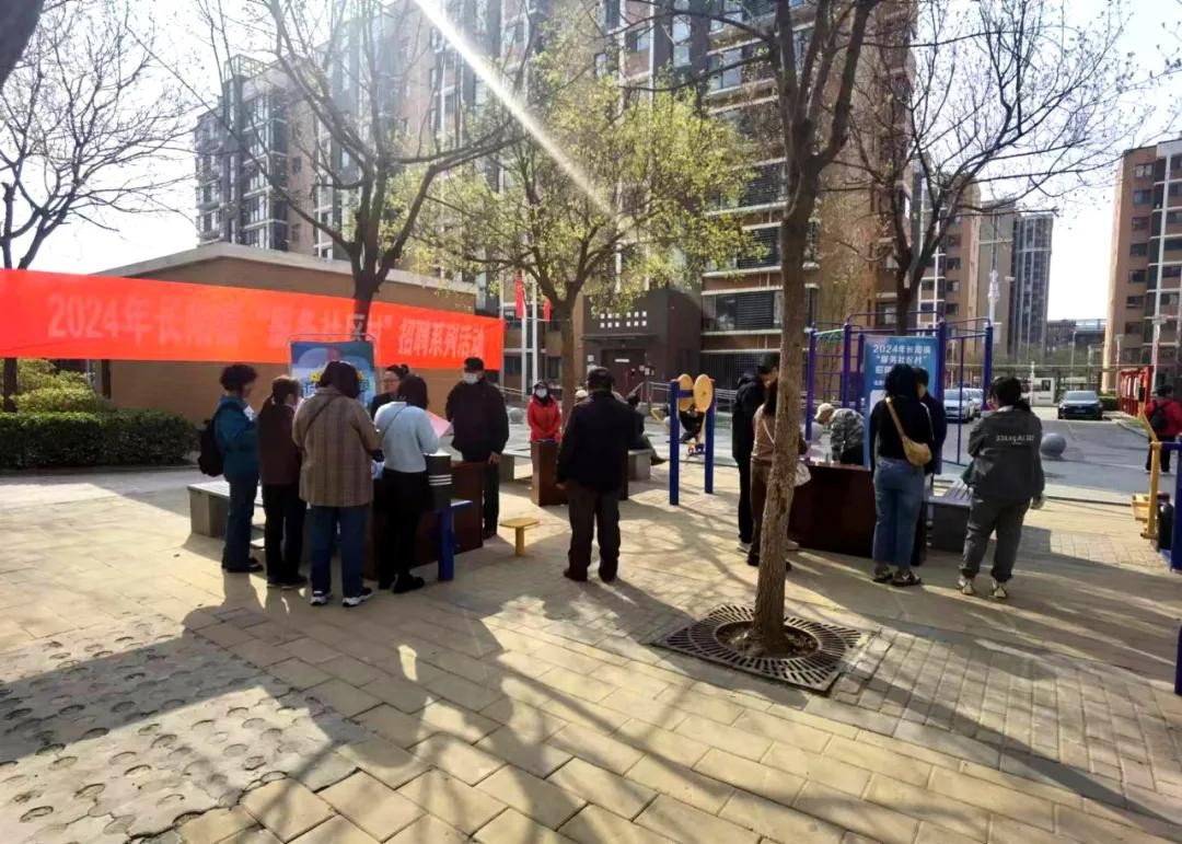 4月2日,2024年招聘系列活动的第一场在水碾屯一村的健身广场举办。此次活动覆盖了周边8个社区和村庄,主要服务对象为前期摸排中登记在册的有求职意愿的失业人员以及未参保的农村劳动力人员。