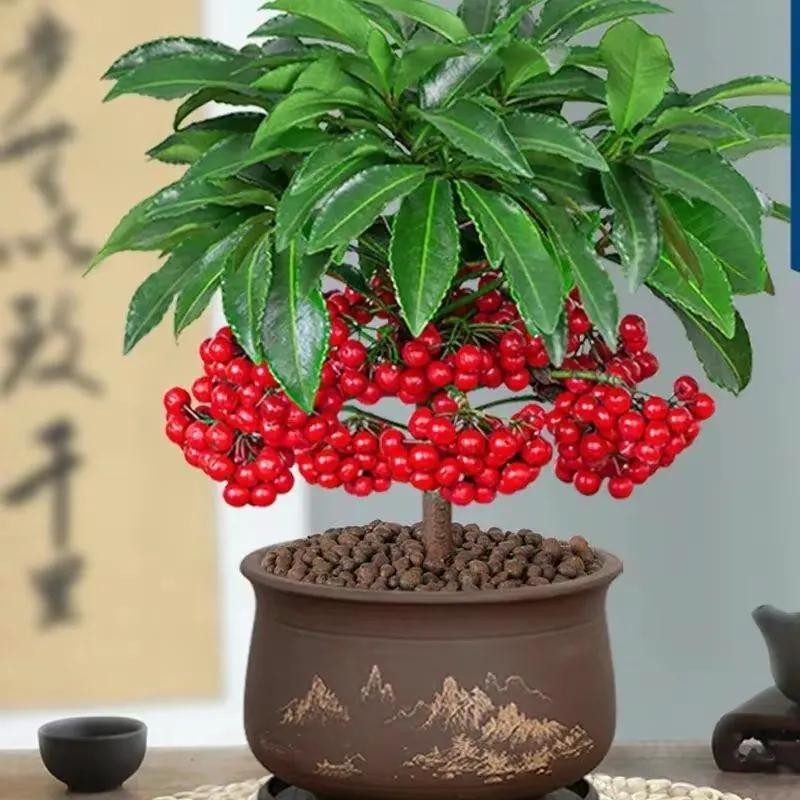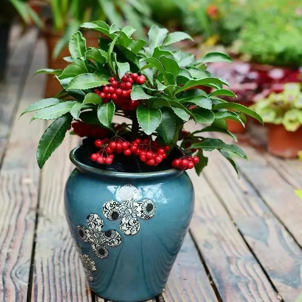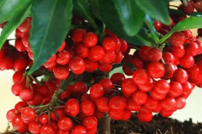 富贵籽株型美观大方,果色鲜红欲滴,果实累累,粒粒色质一致,在翠绿叶片的衬托下,更加鲜艳夺目,串串红果给人以温馨、热烈、喜庆、吉祥的感觉,观赏性极强。