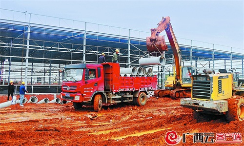 4月30日,在钟山县工业园区,建筑工人放弃“五一”假期休息,加紧推进厂房、配套设施等项目建设。今年第二季度,该县集中开竣工重大项目15项,总投资16.27亿元。廖超文 摄