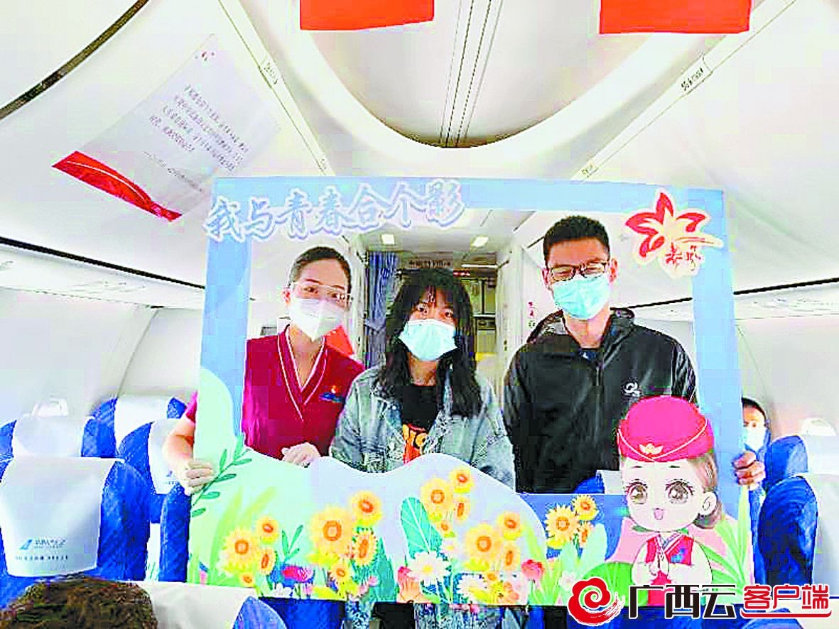 4月30日,在南宁—杭州CZ3757航班上,机组人员精心策划了一场以“春风行·新作为·青春建新功”为主题的庆“五一”活动,邀请旅客写下“劳动最光荣”“不忘初心 牢记使命”等标语,并一起合影。王凯 孟珂 摄
