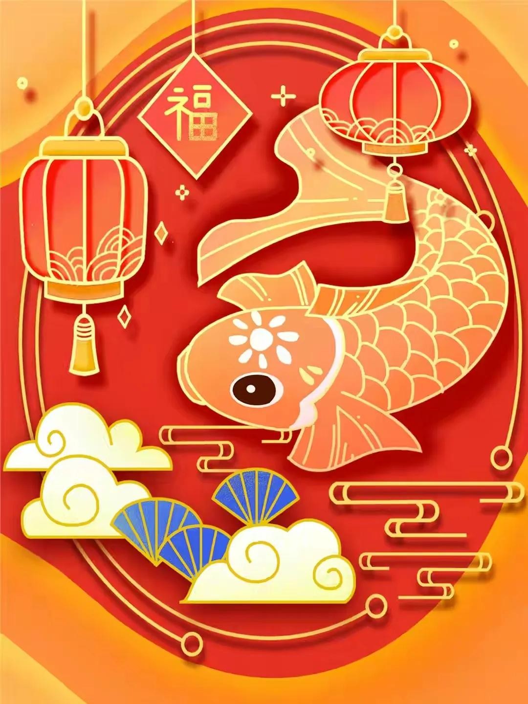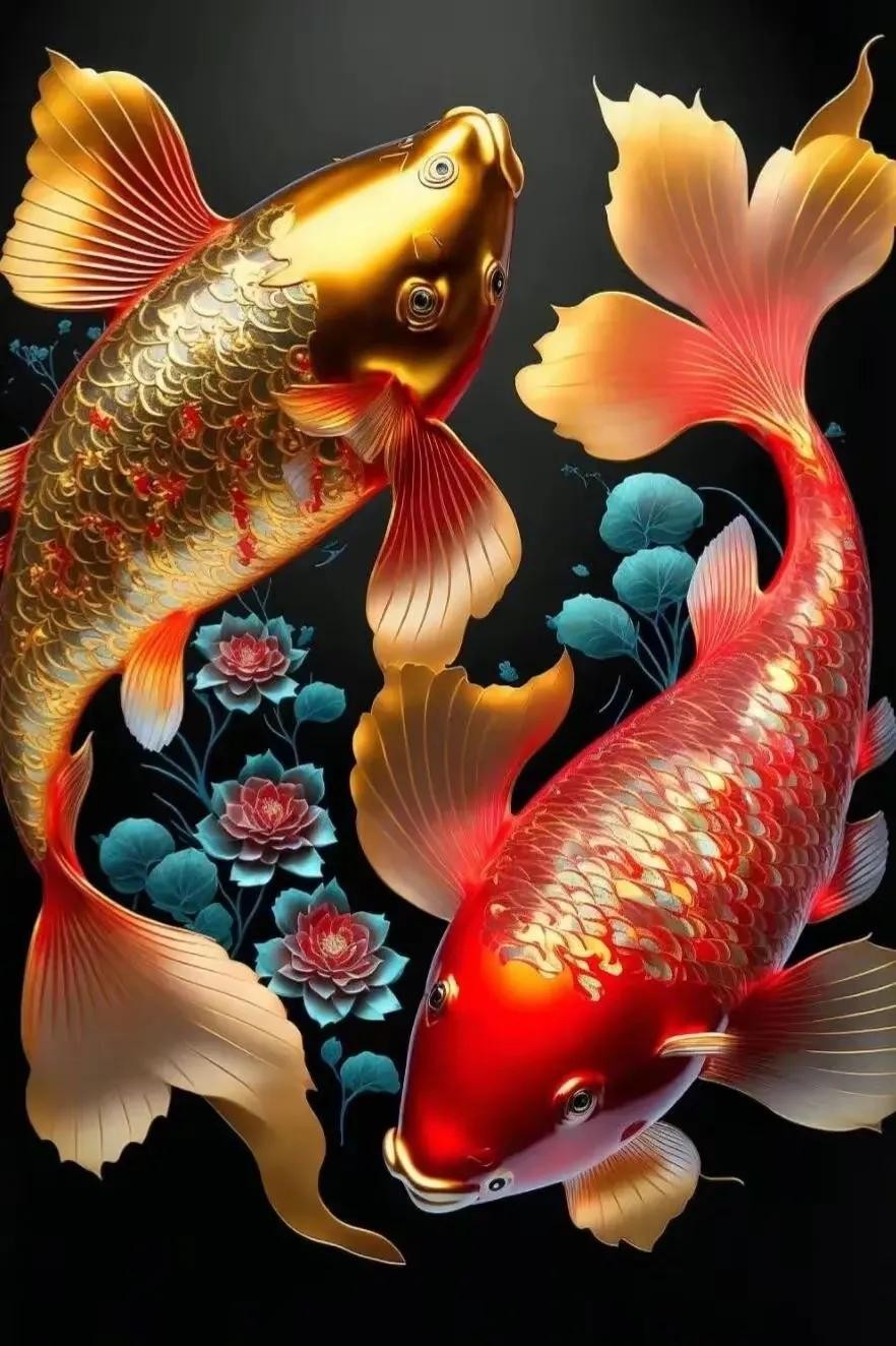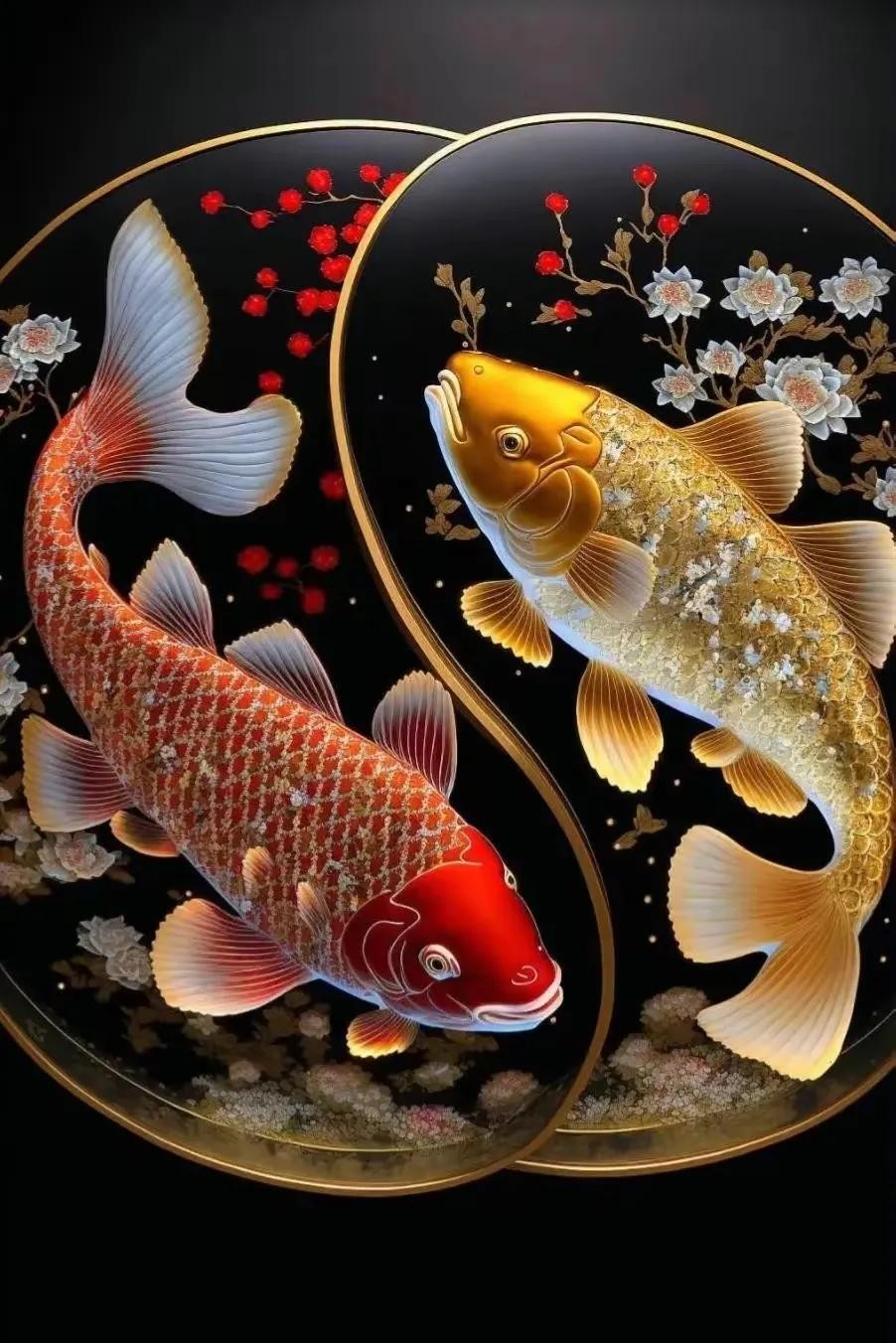 2023吉祥好运锦鲤图片,新年祝福财源滚滚发财双锦鲤壁纸