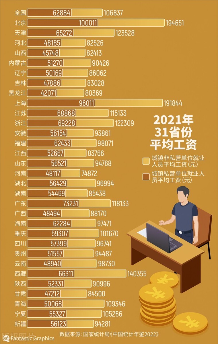 近期,国家统计局编著出版的《中国统计年鉴2022》公布了新的平均工资,快来算一下你的平均工资,达标没?