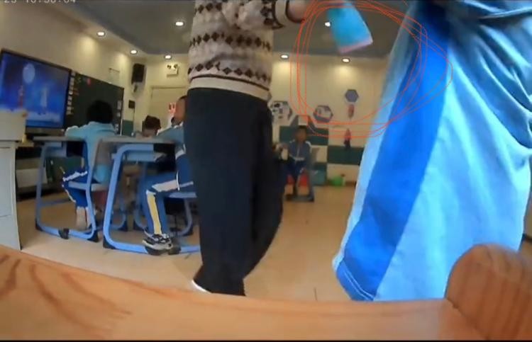视频显示,女教师手持喷壶,要求学生将手中的水杯放到指定位置。 然后,她多次将喷壶对准学生的面部,男孩一度大喊“你别”。 另一段视频显示,女教师持一根蓝色长条状物体击打学生,而学生试图抬起手臂进行防御。