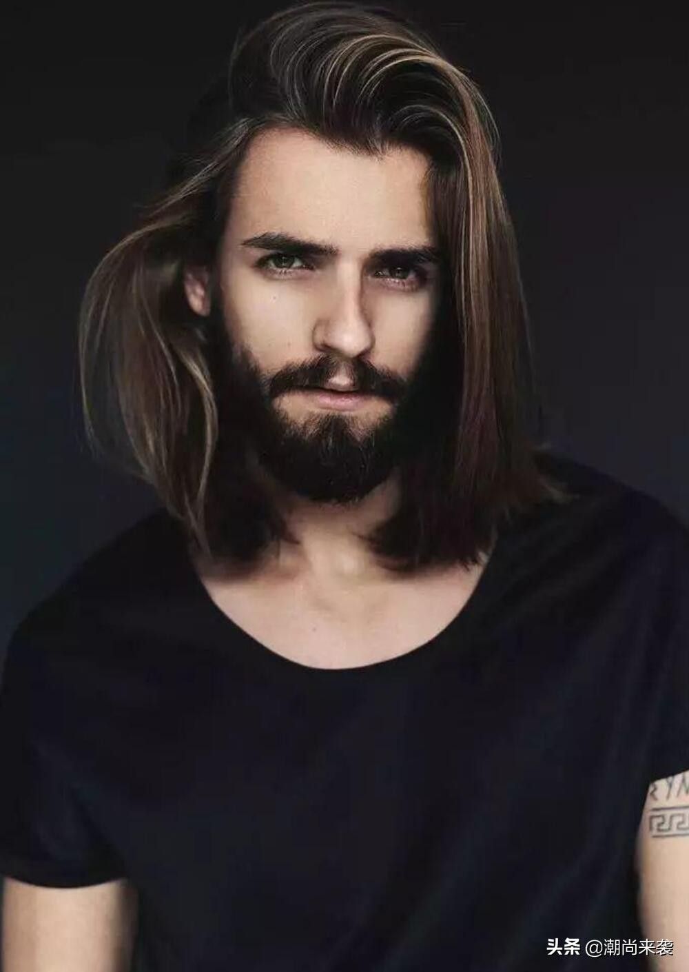 设计方法极其简单,头发留及肩长度,用发胶把头发弄出容易定性的硬度,特别是刘海部位的头发多喷施点发胶,用梳子把刘海的头发向一侧梳出翻转弧度,露出皎洁的额头,一款男人味十足的长发就搞定了。