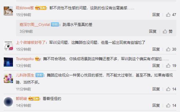有网友评论,舞蹈不适合场地,军训跳这个确实有点尴尬。
