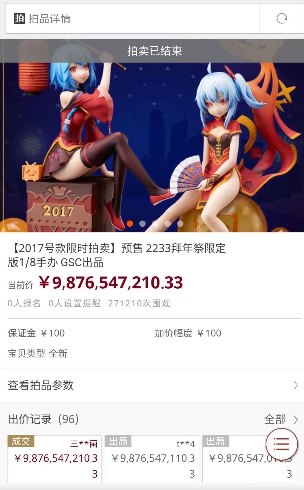 没有98亿资产,还敢买手办?2017年,B站上有人以98亿拍下编号为2017的2233娘手办。但最终由于恶性竞拍,竞买人表示无力支付,其模型便被B站收回作为展品。这虽是乌龙事件,却也反映出手办市场正在被不断炒热。但手办雕塑是否具有收藏和投资价值?