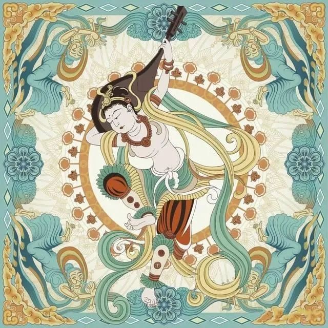 敦煌莫高窟“飞天反弹琵琶”壁画复原图