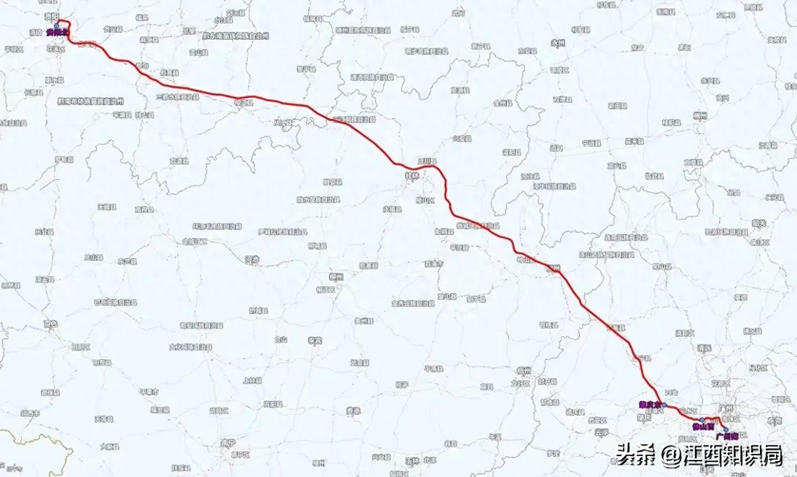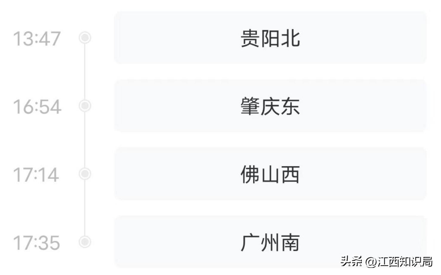 G3735次列车由贵阳北至广州南,贵阳至广州大标杆