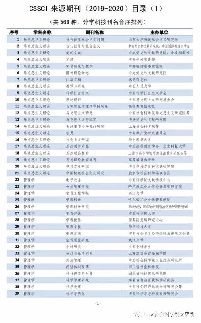 【南大核心】重磅!最新版CSSCI来源期刊目录(2019-2020)!