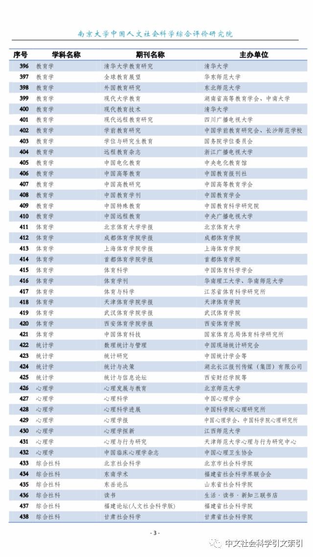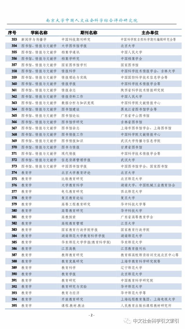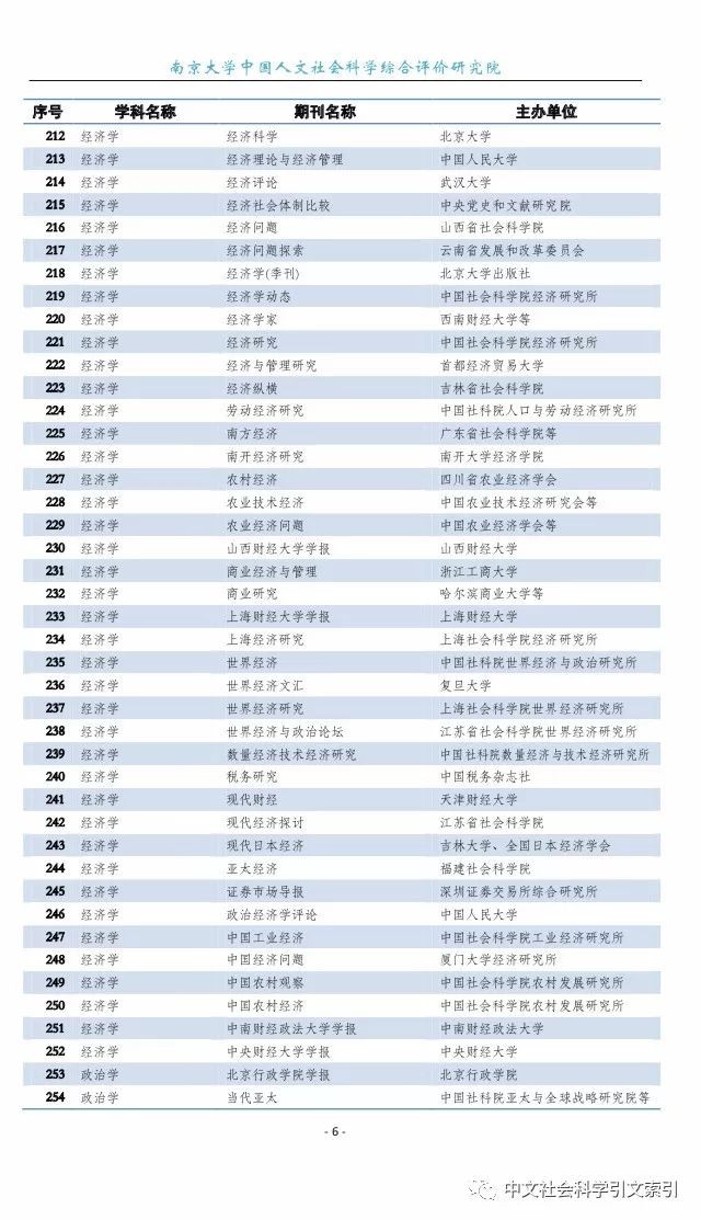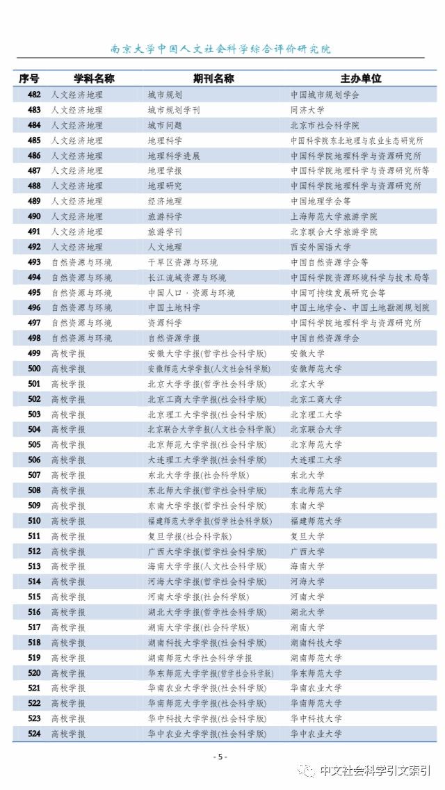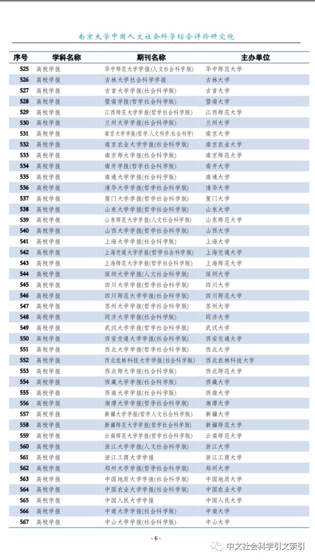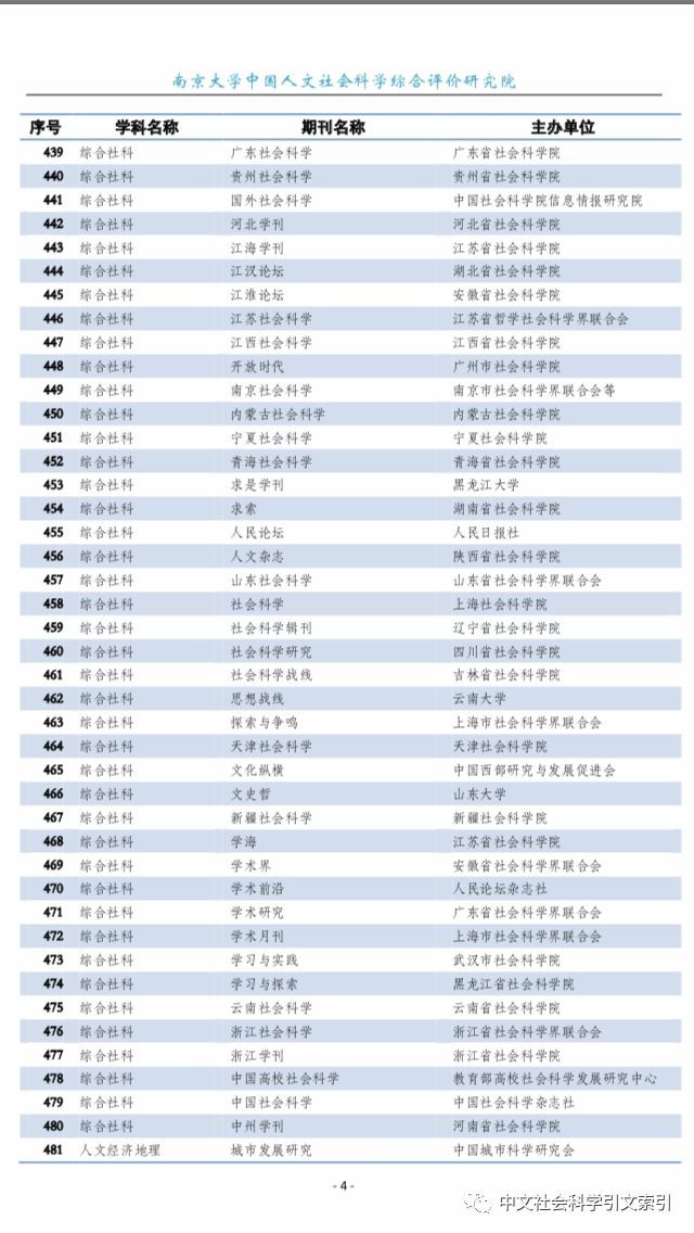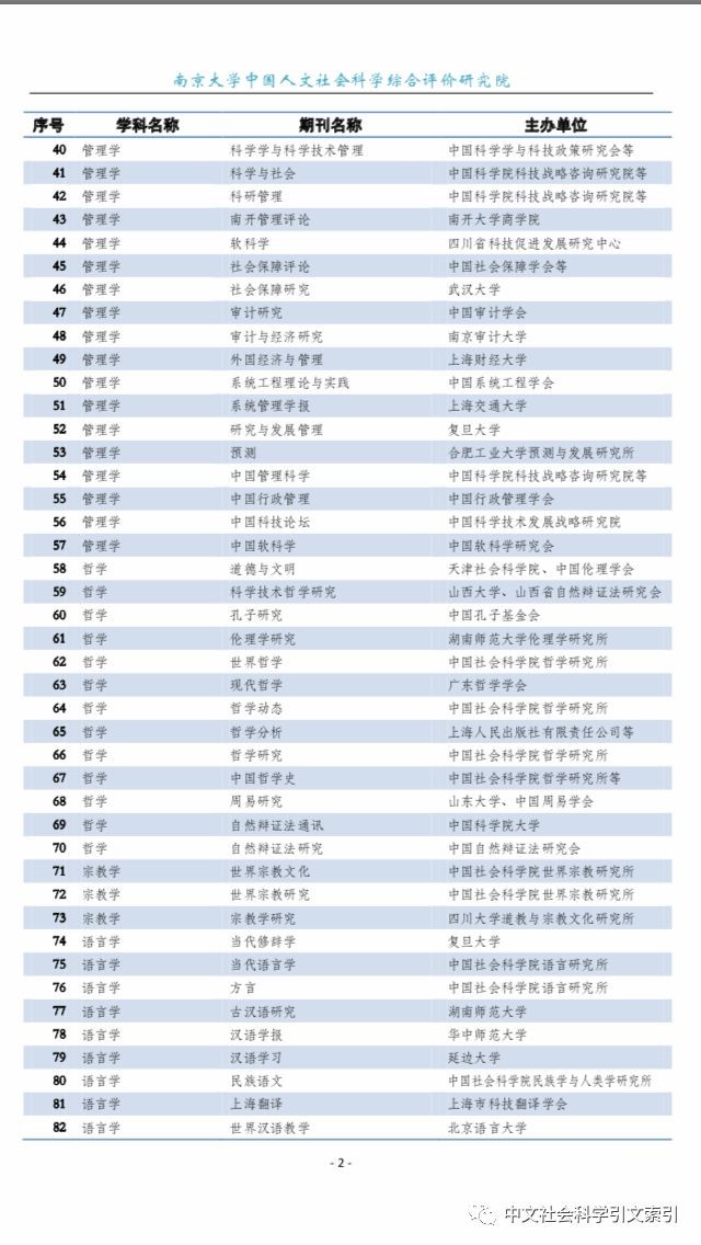 2019年3月25日,南京大学中国人文社会科学综合评价研究院发布最新版(2019-2020版)CSSCI 扩展版来源期刊目录,即常说的南大核心期刊目录发布。