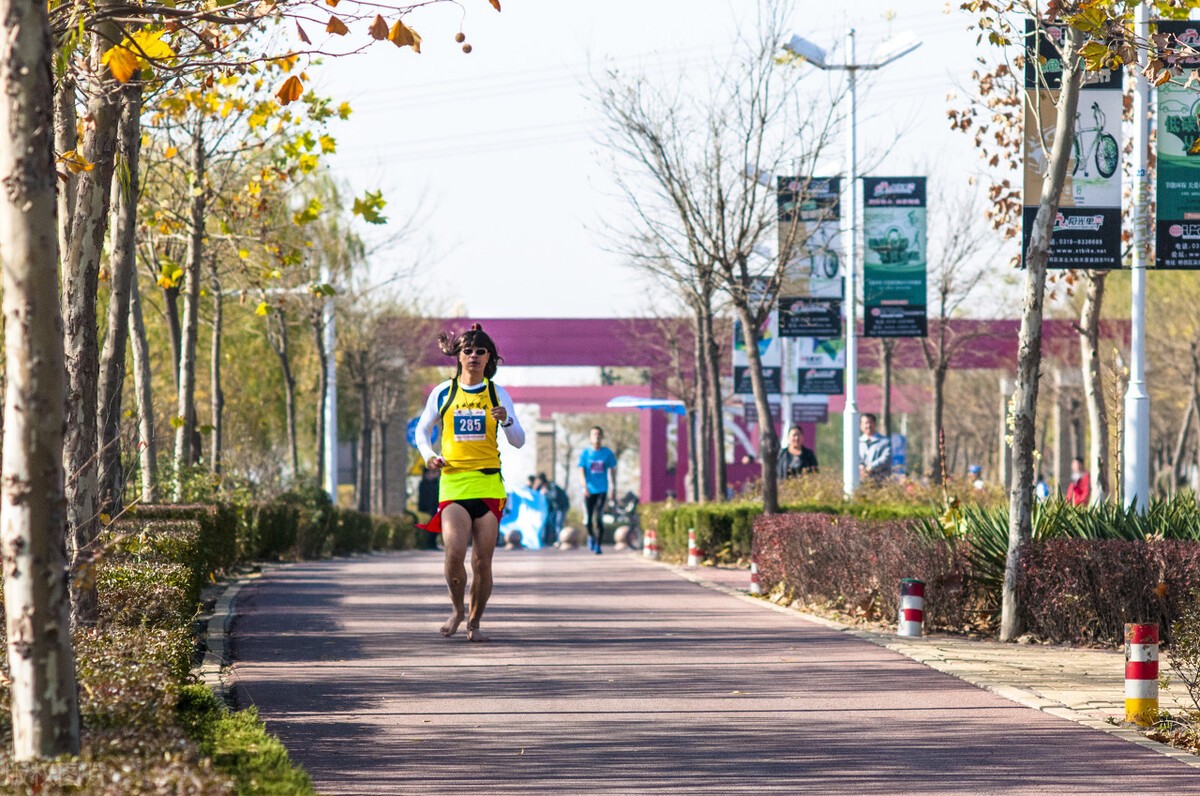 秋天,树叶变黄了落在了地上,远处看去,健身大道像条金黄的道路,美丽极了。在安静的午后漫步在健身跑道上,听着流水声鸟叫声多么地修养人心啊。