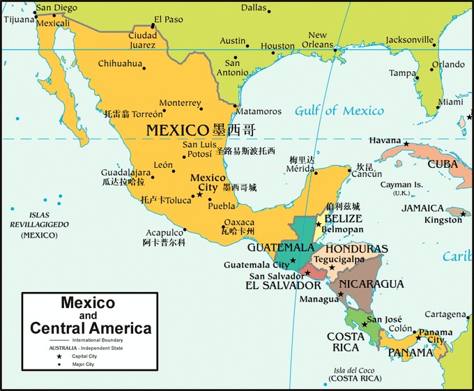 从上面的地图可以看出,墨西哥地理环境两面靠海,可以依靠海来获取生路,但也有一个不好的地方——离美国太近。