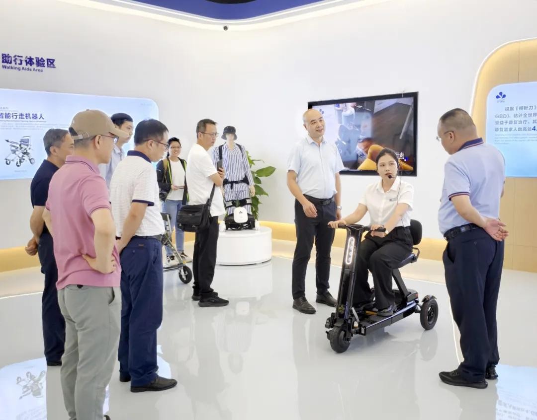 黄忠东副主席一行参观作为科技桂林生产基地智能护理数字化展厅,详细了解大小便智能护理机器人、大小便智能护理床、便携式洗浴机、智能行走机器人、智能助行机器人、电动折叠代步车、电动爬楼机、多功能移位机等智能护理设备的功能特点及应用案例。