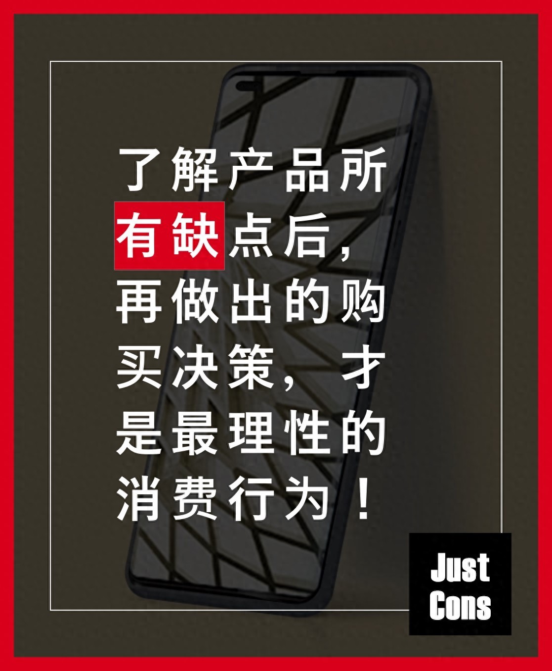 我们意识到,如今许多产品评测都在过度强调优点,往往由于各种利益关系,盈利原因,有意无意地弱化,甚至忽略了产品缺点。这可能导致消费者被误导,从而做出错误的购买决定。通常,人们也是在购买产品后才发现许多缺点,从而感到后悔并且浪费金钱与时间。JustCons 就是为了解决这个问题而成立的,通过测评罗列出产品的所有缺点信息,帮助人们能够更客观理性地了解产品,从而做出更优质的购买决定。