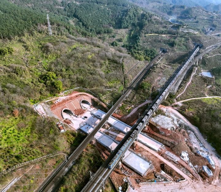 为此,项目建设遵循“动态设计、动态施工”原则,采用TSP、地质雷达、红外探水、超前钻孔等方式,实时准确掌握隧道掌子面前方地质状态,成功解决了地下暗河、溶洞等不良地质的施工难题。同时,针对隧道进口临近既有铁路兴珞线、陶铜联络线施工,参建公司成立专班对接成都铁路局,采取“分段审批、分段施工”的方式,快速解决了涉铁施工手续。