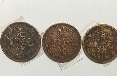 铜元以红铜95%、白铅4%、锡1%配合,每枚重二钱,当制钱十文。正面中央为“光绪元宝”及满文“宝广”,外环珠圈。下缘纪值文字为“当十”;背面中央铸“飞龙”图及珠圈,上缘英文纪地“KWANGTUNG”,下缘英文纪值“ONECENT”。清末铜价剧涨,民间毁钱为铜,以获数倍之利,市面出现钱荒。广东因停铸制钱,市面制钱日乏,小额流通十分不便。为救钱荒,同时受香港铜元及外币影响,光绪26年6月,两广总督德寿与前总督李鸿章奏准广东仿香港铜仙铸造机制铜元。故清代机制铜元的铸造由广东伊始。继而福建、江苏、四川等省相继仿铸铜元。光绪元宝版式繁多,尤以当十者为最。多位清帝在位时发行过铜币来作为流通货币,铜币的使用具有重要的现实意义和历史意义,使交易逐渐便利起来。而如今,光绪元宝也具有一定的收藏价值许多收藏家对大清铜币爱不释手,而收集多种多样的铜币已经成为了他们的目标。