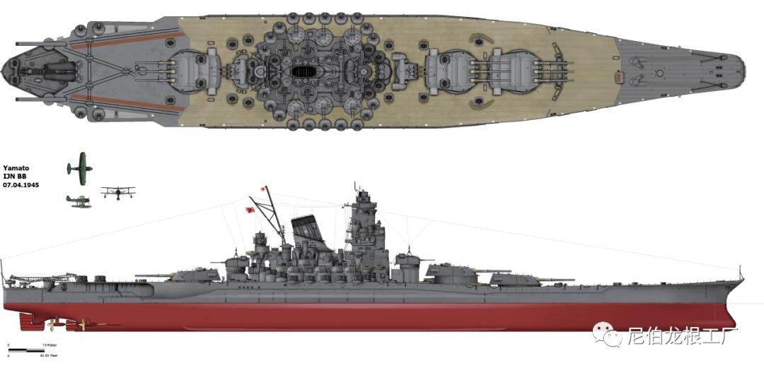 当然,大和号战列舰的吨位也是巨大的,全长263米,宽39米,满载排水量7万多吨,已经超过了当时重型航母的吨位,毕竟现在的伊丽莎白女王级航母也才6.5万吨,大和号战列舰的设备也是非常先进的,装备了先进的水压机和酸性平炉,还有配套的大型潜望镜和测距仪,这都是进口德国的设备。