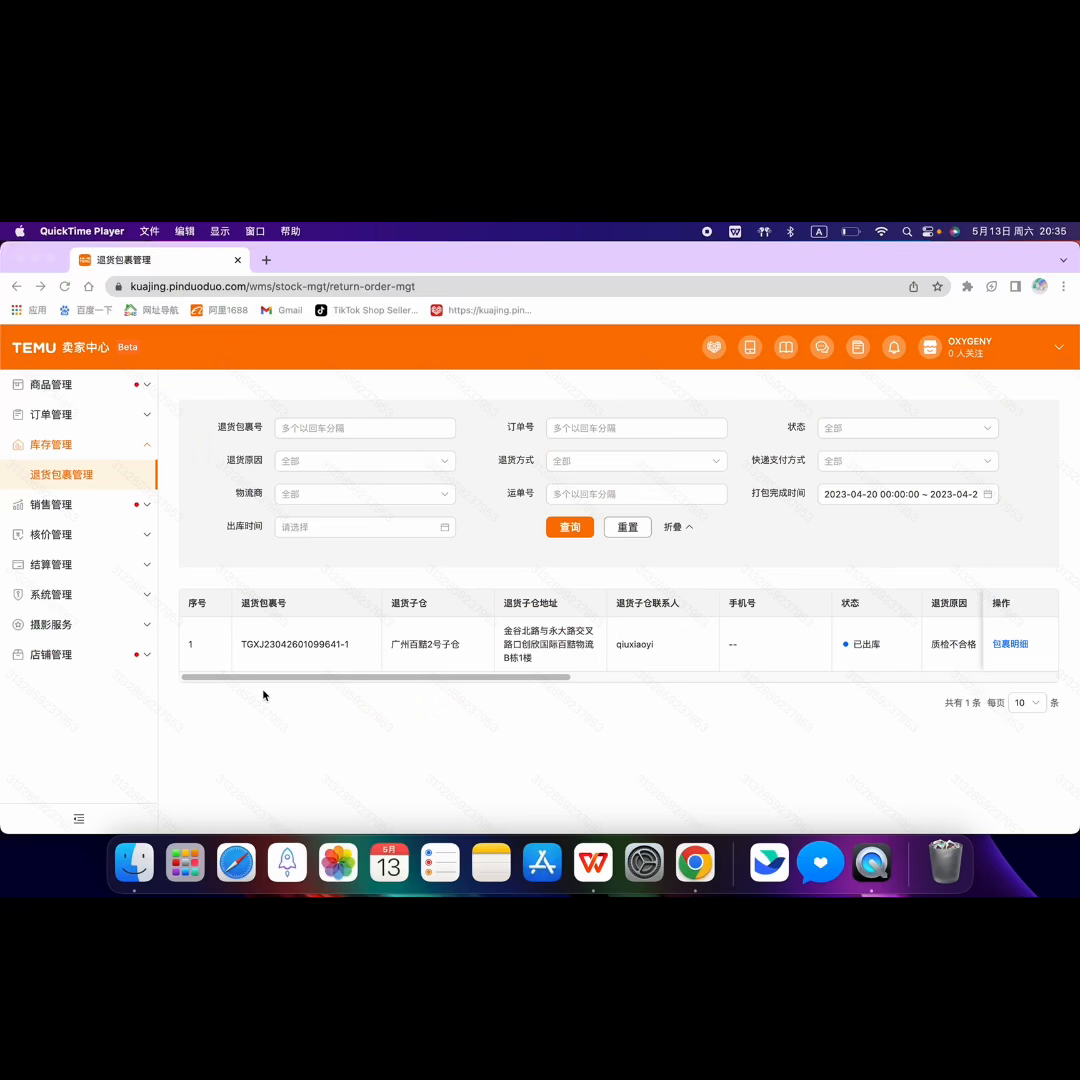 ·接下来就可以看到找到退货的包裹了。包裹里面的仓库,哪里退货的原因也都有写清楚,包括退货的数量及发的什么快递,这里也都可以看到,具体每一个产品它到底发生了什么,质检哪里不合格,包裹的明细里边有提示,所以你看可以看到是这样一个产品。