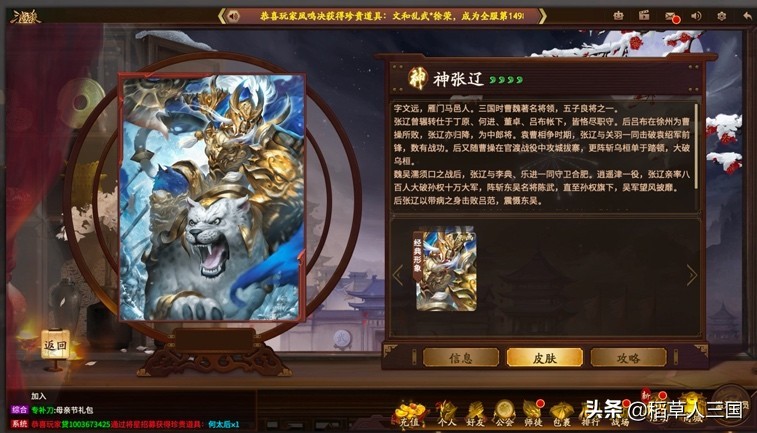 这就是神张辽这位武将,大家想要了解更多的话可以结合历史等到日后在三国杀移动版中登场的时候可以体验一波,这样也会就会了解到三国杀策划为了还原历史的用心程度。