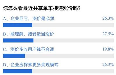 不少业内人士也认为,价格调整对于共享单车行业发展而言是必要的,在经历过低价抢占市场份额后,运营、维护车辆、高峰期调度等成本,对于企业来说均是不小的压力,适当地调整收费价格,有利于优化企业财务的可持续性。