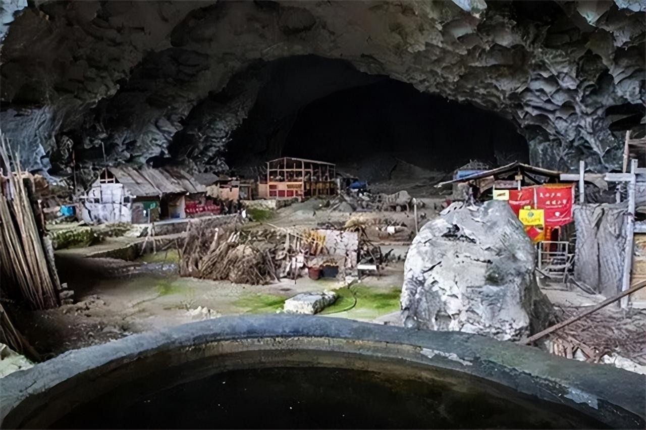 中洞苗寨位于一个庞大的天然溶洞中,溶洞深度约200米,宽度约110米,高度约50米,总面积超过20000平方米。这个天然的庇护所四季如春,为居民们提供了理想的居所。