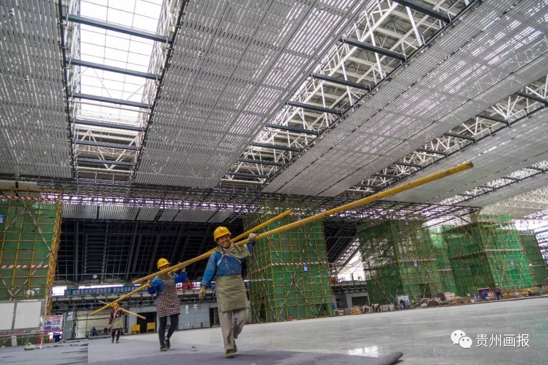 在高铁贵安站工地,工人们依然在现场紧张施工,车站候车厅、站台、售票大厅等已经成型,电梯也已经安装完毕。据中铁建工集团贵安站项目部书记胡春旭介绍:为早日开通贵安站,党团员带头做表率,坚守第一线;整个施工采取节假日期间一部分人不放假,留在现场继续施工。目前整个工程已完成80%以上,已进入收尾阶段。