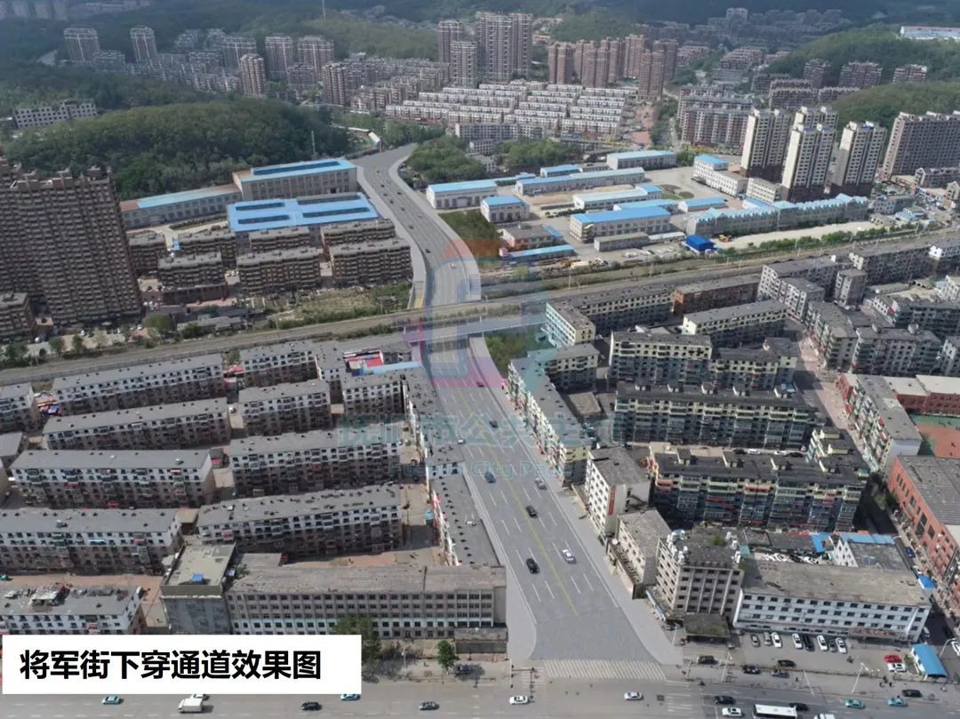 ④将军街(抚顺城路--高山路)道路总长度645米,下穿铁路363米,跨河桥20米,道路宽度30米;