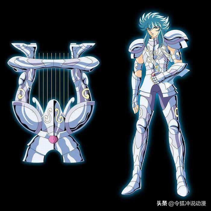 在圣斗士中,作者对于以乐器为武器的战士尤为偏爱,像圣域的奥路菲、北欧篇竖琴米伊美、冥王军的法拉奥,都是独挡一面的角色,所以玩音乐的都具有超强实力。天琴座白银圣衣的使用者必须精通音律,使用者可以以悦耳的音乐攻击和催眠,在冥王篇中,奥路菲曾使用琴声麻痹三巨头,并以音线为武器大胜冥斗士天兽星法拉奥,奥路菲能被称为最早领悟第八感的白银圣斗士,圣衣的附加属性起到不小的作用。