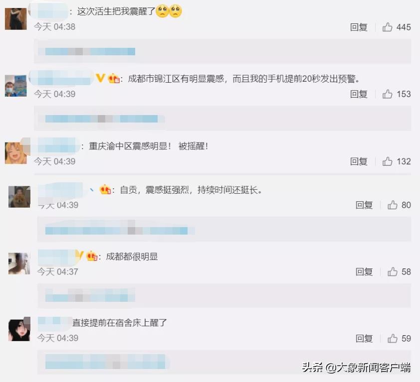 成都、重庆等多地震感明显,有不少网友称被地震晃醒