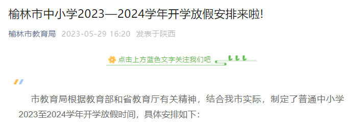 延安市教育局关于2023年全市中小学