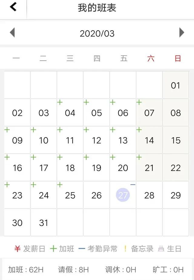上图是我的三月份考勤表,笔者是三号上班的,四号开始加班,截止25号为此,笔者加了62个小时。明天是星期六加班10个小时,笔者这个月预计加满80个小时班,我们部门加班管控80个小时。也就是说现在深圳富士康加班还是蛮多的。